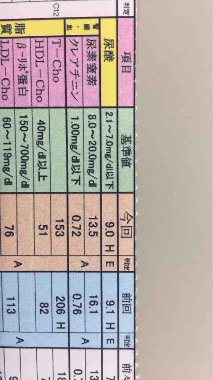 健康診断の結果が届いて、尿酸値が現状維持となりました。