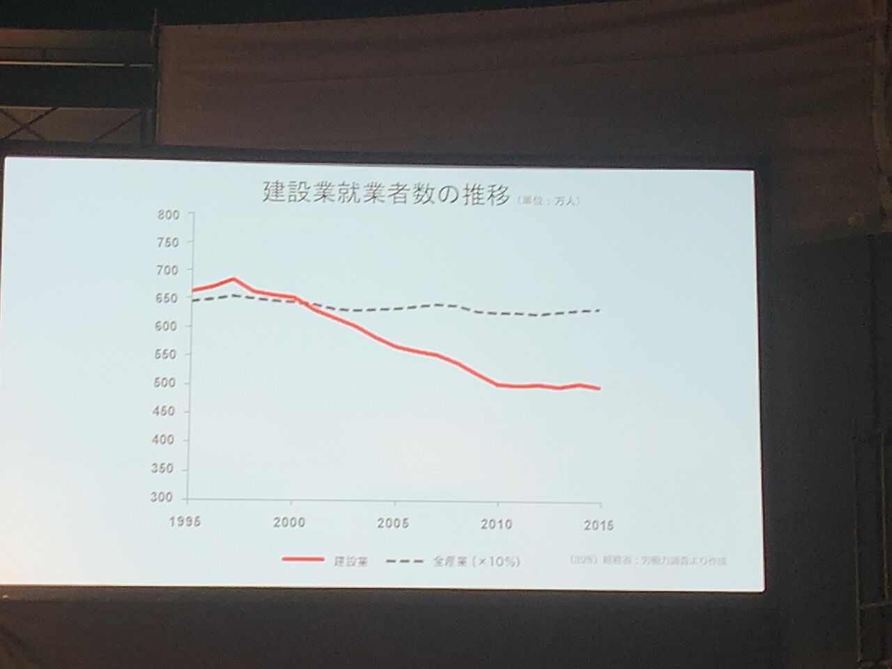 下の写真では建設業の従事者数が減り続けている事が解ります。