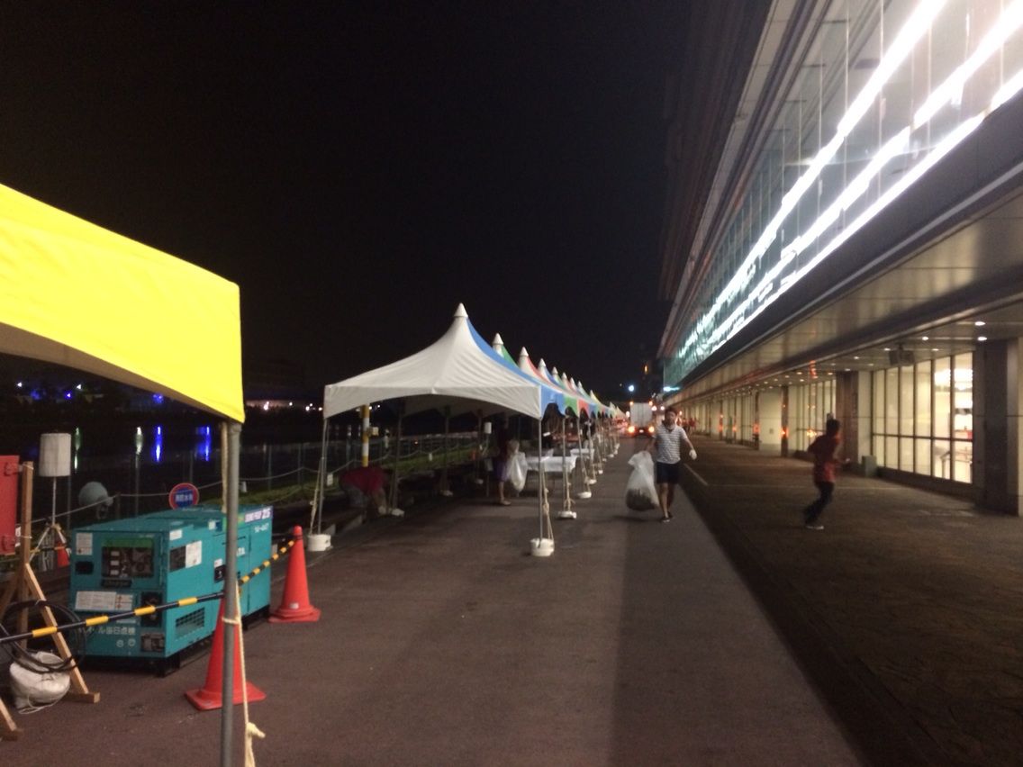 お祭り終了後は掃除です、お手伝いの団体は22時で帰りましたが、青年会議所のメンバーはまだまだ行う感じでした。