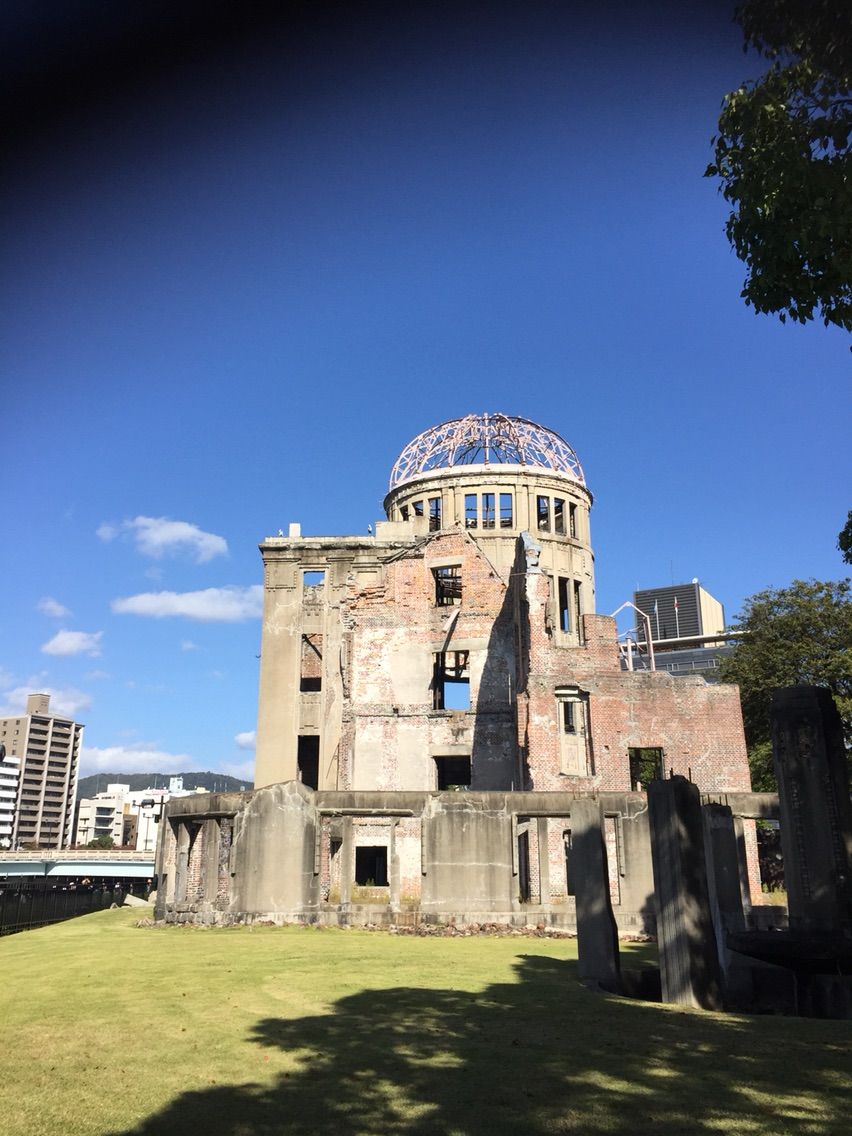 2日目は広島市内を回りました、朝原爆ドームに行き、平和祈念公園の資料館にも行きました。