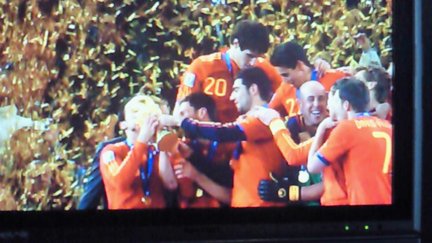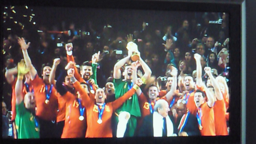 早朝から行われたサッカーワールドカップ決勝戦は、延長後半スペインは決勝点を挙げて初優勝しましたね。