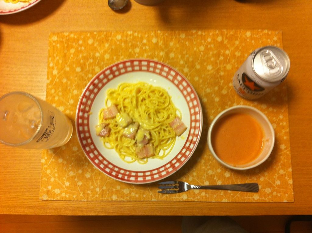 先日の夕飯は、カルボナーラとガスパチョを作りました。
