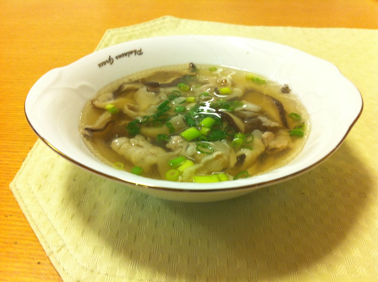 スープにキノコの旨味と、豚肉の旨味が良く混ざっていい味に仕上がりました。素材の味をなるべく出したいので、塩は少なめの方がいいですね。