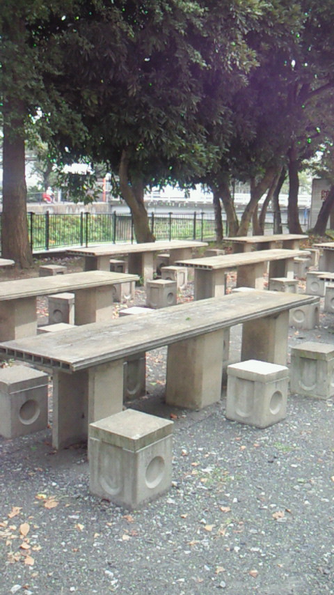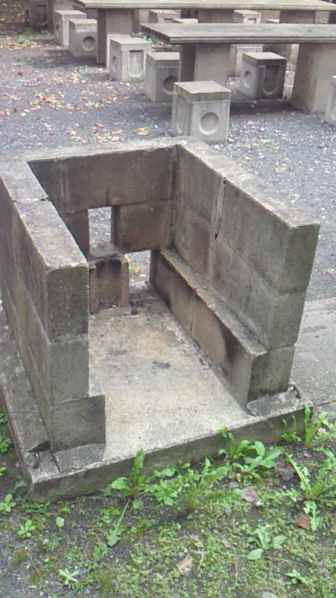 校舎の裏手に行くと、キャンプ場の吸い飯場と、野外テーブルのような施設が設置してありました。