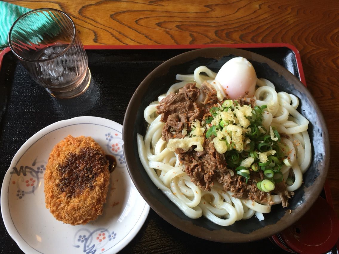 昼食はうどんです、地元でも人気のお店に行きました。