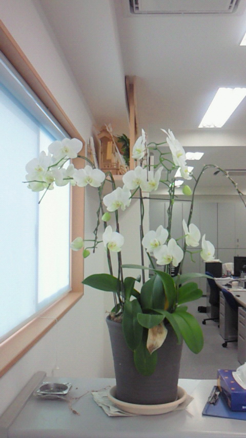 吉田電工本社の新築祝いに頂いた蘭ですが、一度花が落ちた後又咲き始めました。