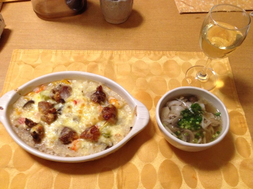 海鮮ドリアと、キノコと豚ばら肉のスープ