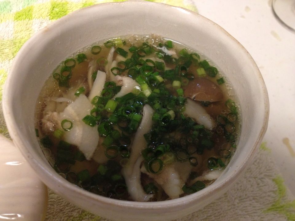 このスープは何回も作ってますが、キノコと豚肉の相性が良く家族でも