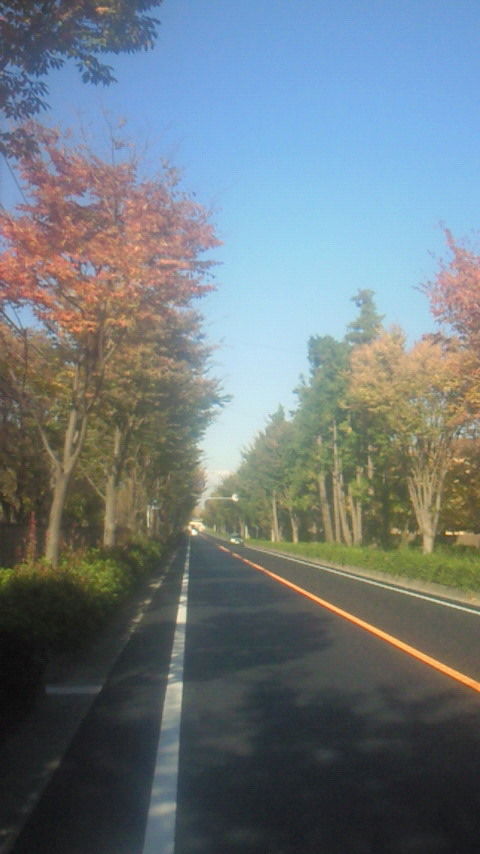 後谷公園前通りは、紅葉が綺麗でボートコースの帰り信号待ちをしている間に